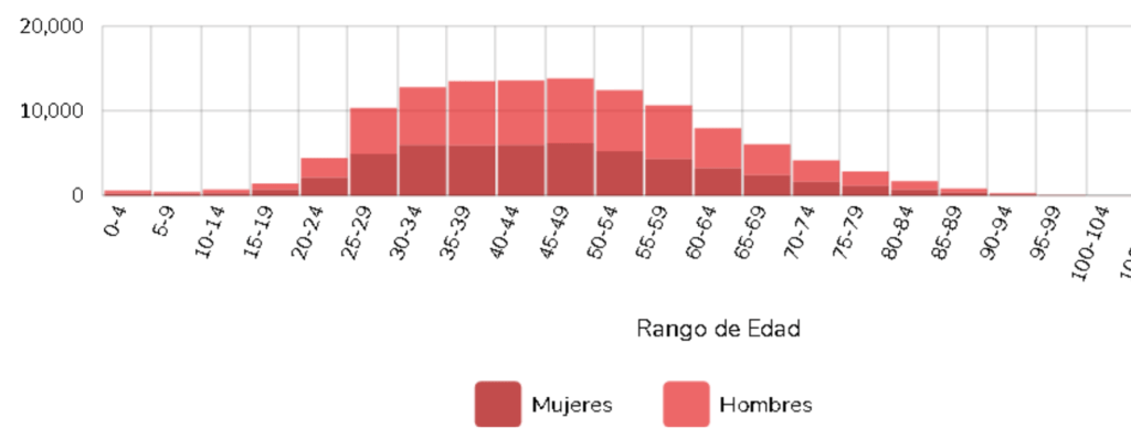 En el rango de edad de hombre y mujeres entre los 20 y 24 años de edad, tienen como resultado en hombres 2, 345 (dos mil trecientos cuarenta y cinco) infectados, y en mujeres 2, 177 (dos mil ciento setenta y siete) infectadas, dando como resultado 4, 522 (cuatro mil quinientos veintidós) infectados. Solo contemplamos este rango de edad para ver un aproximado de las personas que se están infectando en un nivel de escolaridad superior.